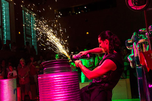 Concebido y realizado por un conjunto profesional de percusión, nuestro increíble espectáculo de percusión reciclada es una obra musical con una filosofía y es la elección perfecta para eventos con un tema verde, ecológico o sostenible. Toda la trama, que comprende el concepto "Aprovechar todo lo que podemos y usar nuestra ingeniosidad para hacer lo que necesitamos", cobra vida mediante actuaciones percusivas de alta energía que dejarán al público boquiabierto: tambores de petróleo, botellas de plástico, amoladoras angulares, tuberías, asientos de inodoro, cucharas de madera y mucho más se transforman en instrumentos musicales reciclados.