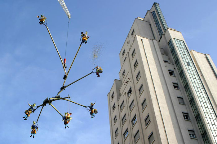 El impresionante espectáculo de tamborileo aéreo de Arlequín es la imaginación infantil hecha realidad. El espectáculo consiste en un desfile de bufones que terminan en lo más alto del cielo en una fantástica estructura aérea que se asemeja a una versión gigante del móvil de un bebé. El espectáculo de tamborileo es una experiencia muy inmersiva para los espectadores que desvía su atención del suelo al cielo.