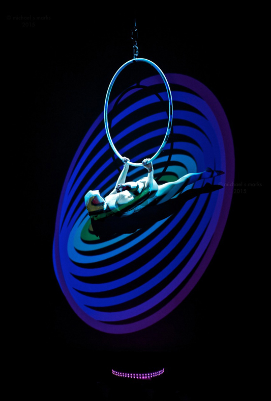 Deslumbra a la audiencia en tu próximo gran evento o celebración reservando este asombroso Show de Tecnología Acrobática, una actuación de circo multimedia realizada por dos hábiles acróbatas: una talentosa contorsionista femenina y una acróbata aérea que realiza una hermosa danza en aro aéreo.