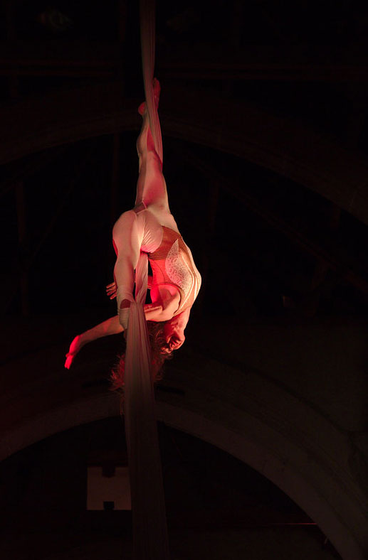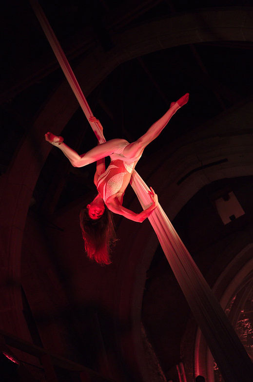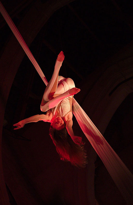 Impresionante coreografía aérea en telas de seda sorprende al público