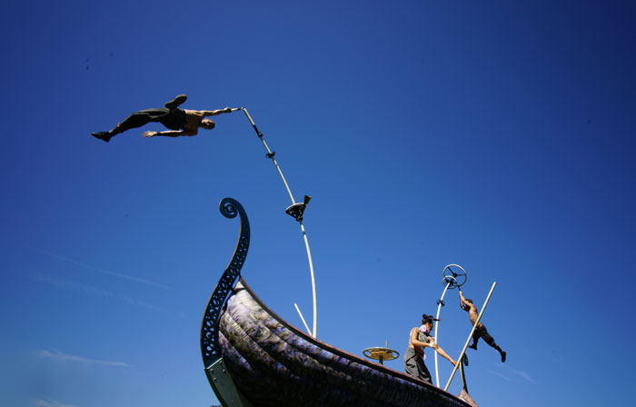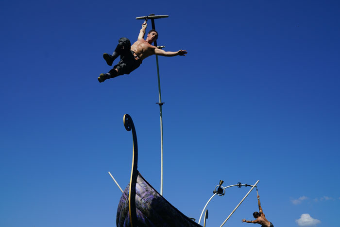 En una búsqueda por llevar sus historias de exploraciones marinas a los habitantes de tierra, nuestro Show Acrobático Temático del Mar dejará completamente atónita a su audiencia con sus cuentos teatrales y acrobacias innovadoras. Este espectáculo de postes oscilantes temático del mar es totalmente único y está basado en un barco de estilo vikingo antiguo.