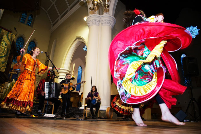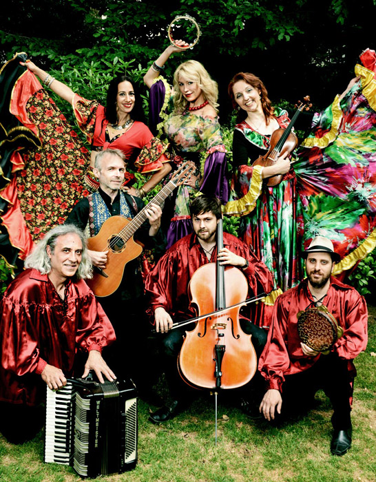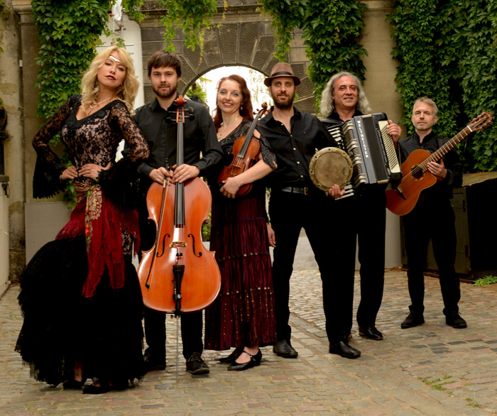 El conjunto de 7-8 piezas consiste en violín, acordeón, guitarra, percusión, violonchelo y hermosas voces que crean un sonido exótico, animado y cautivador que fascinará al público y está acompañado por 1 o 2 bailarines.