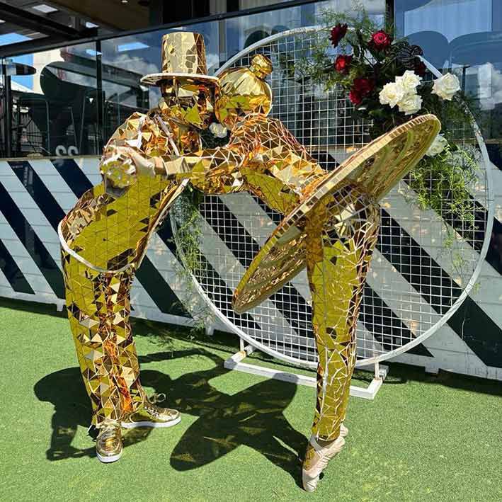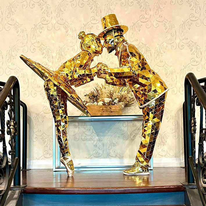 Cubiertos completamente en espejos reflectantes dorados, esta pareja irradia clase y elegancia y le dará a su evento una sensación VIP.