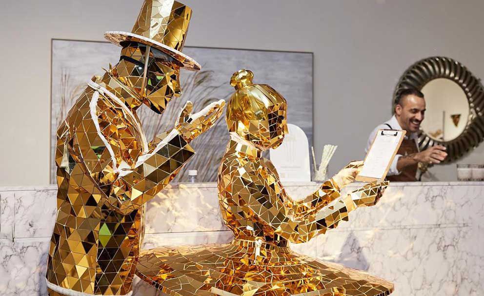 Nuestro hombre espejado y bailarina espejada recorrerán tu espacio de eventos causando un impacto magnífico y prometiendo atraer atención como tema de conversación.