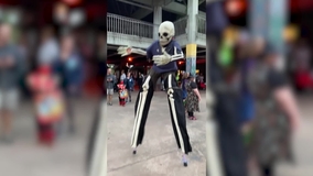 Con una altura impresionante, nuestro esqueleto de piernas largas interactuará con los invitados, chocando los puños, posando para fotos, e incluso mostrando movimientos de baile espeluznantes.