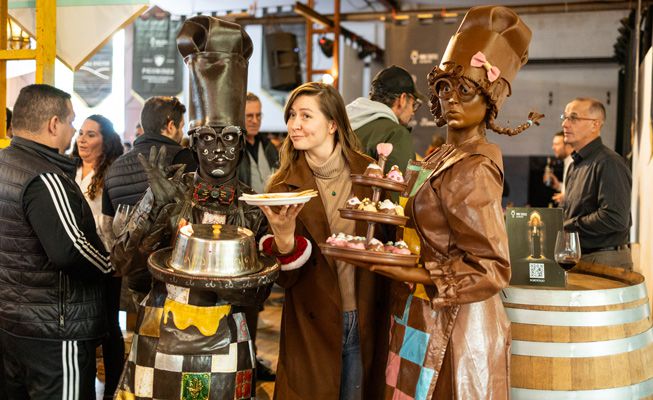 Da un toque juguetón y memorable a tu evento con estos personajes de chocolate ambulantes disfrazados con trajes deliciosos