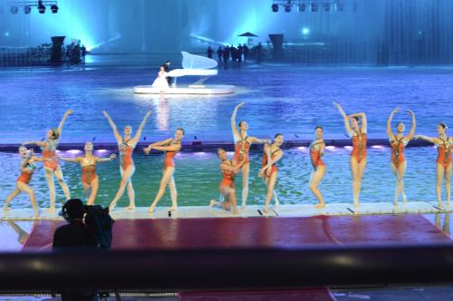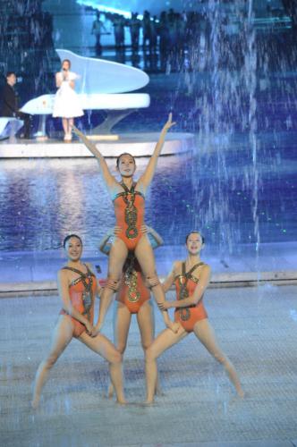 La natación sincronizada es una forma híbrida de natación, danza y gimnasia, en la que los nadadores realizan una rutina sincronizada de movimientos elaborados en el agua, acompañados de música. Shining Water Star es el primer grupo de natación sincronizada en el sur de China. Todos los miembros del grupo son antiguos atletas profesionales de natación sincronizada, algunos de ellos campeones nacionales.