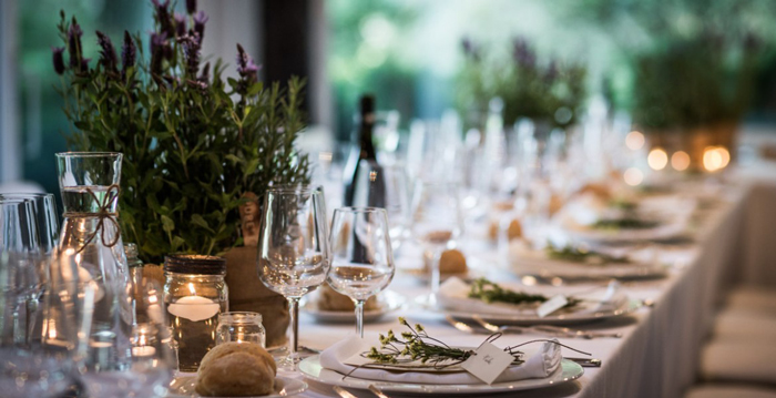- Mesas, manteles y vajilla proporcionados