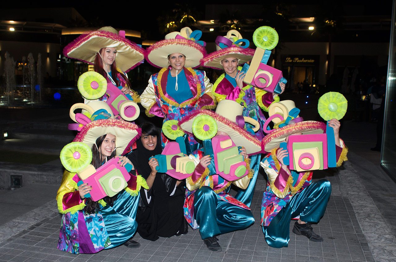 Los Fotógrafos de Espuma están vestidos con trajes divertidos y de colores brillantes, y llevan sombreros gigantes. Son una excelente opción para eventos familiares y para adultos.