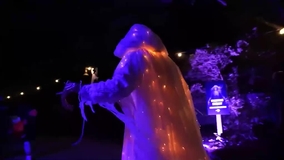 Iluminado por LEDs, él está feliz de posar para fotos antes de deslizarse en busca de otra víctima desprevenida.