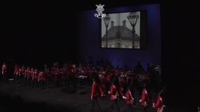 Con sombreros tradicionales de piel de oso y chaquetas rojas brillantes, este acto puede actuar como una orquesta de marcha, o con bailarines de ballet y otros artistas.