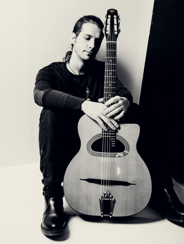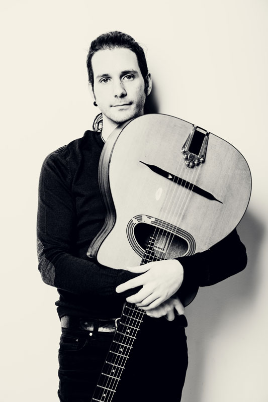 También apasionado por las melodías y ritmos sudamericanos, este guitarrista italiano ha explorado sonidos de diferentes culturas y países y también ha sido influenciado y cautivado por la música clásica india. Fue en Londres donde descubrió la música de jazz gitano, un género que combina el swing de los años 30 con la belleza y virtuosismo de la música gitana.