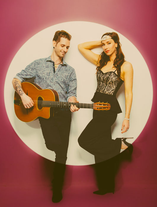 Nuestro músico de jazz gitano colabora con diferentes bandas y grupos musicales. Consulte su doble guitarra Dúo de Jazz Gitano y también está disponible como dúo con una cantante femenina, así como parte de un espectáculo de banda de swing en vivo.