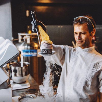 Nuestros artistas están listos para llevar a todas partes este enfoque vanguardista combinado con la alta cocina y elaborar con maestría sus helados de nitrógeno