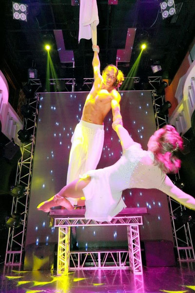 Ofreciendo rutinas estándar y rutinas personalizadas, póngase en contacto con nuestros coordinadores de entretenimiento para discutir cómo este artista aéreo puede trabajar para brindar un entretenimiento emocionante a su evento. No solo es un acróbata aéreo en solitario, también puede actuar en un dúo aéreo con una impresionante acróbata de circo femenina, contáctenos para obtener más información.