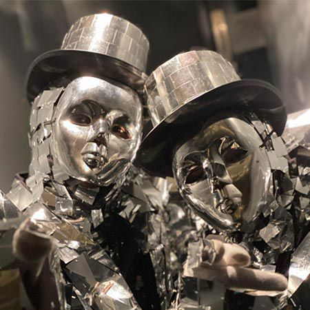 Estos bailarines de espejo únicos serán el alma de tu fiesta, utilizando sus personajes para deslumbrar al público con su coreografía.