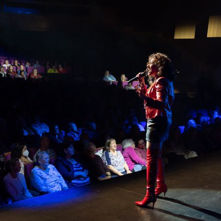 Nuestra talentosa vocalista femenina da vida a las canciones de Whitney Houston, acompañada de una banda, coristas y bailarines para un espectáculo inmersivo.