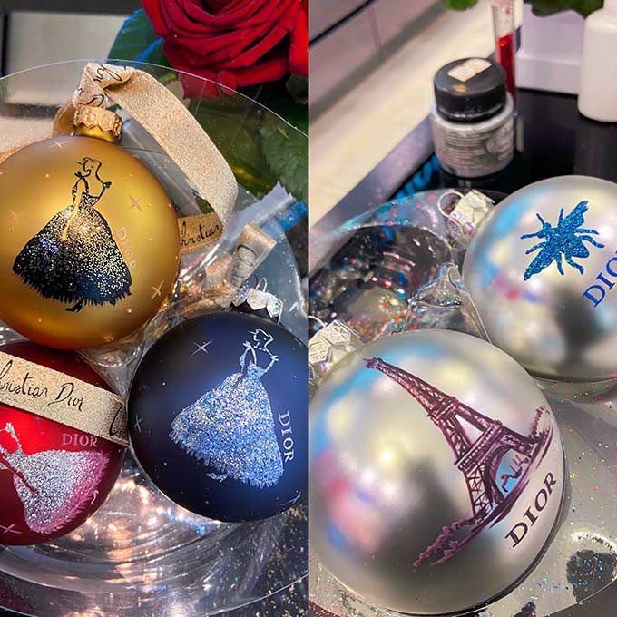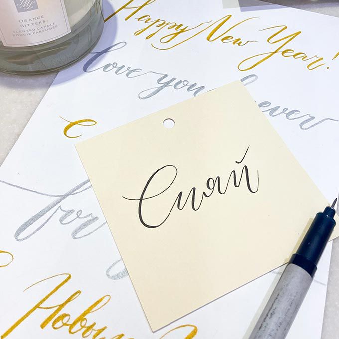 Ella ofrece sus ilustraciones y caligrafía en una variedad de superficies que incluyen postales, empaques, frascos de perfume, adornos navideños y más.