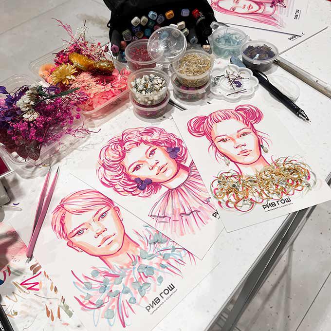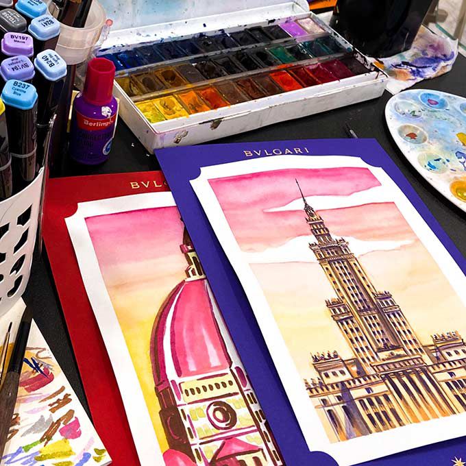 Ella puede crear ilustraciones en vivo en varios eventos como funciones corporativas, cenas de gala, exposiciones, fiestas privadas, eventos de marca y más.