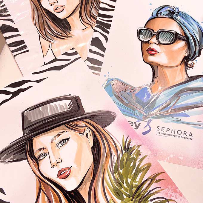 Nuestra artista puede aportar una dimensión emocionante a tu evento, interactuando con los asistentes mientras dibuja sus retratos en un estilo de ilustración de moda.