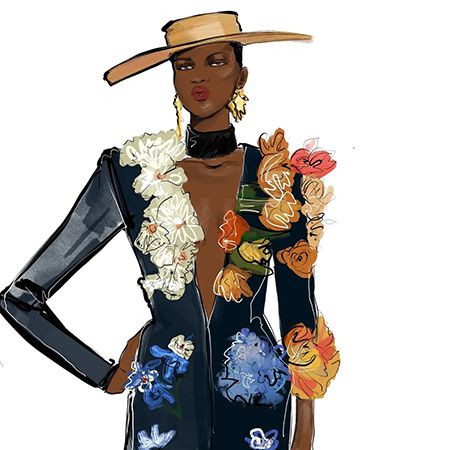 Este artista de moda dibuja retratos elegantes inspirados en diseños estructurados, adornos intrincados y la fuerza de las mujeres emprendedoras.