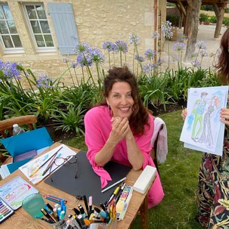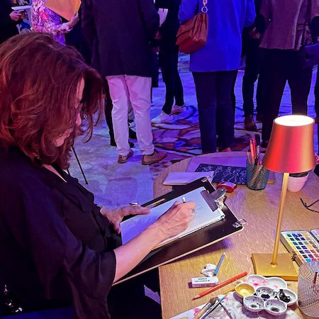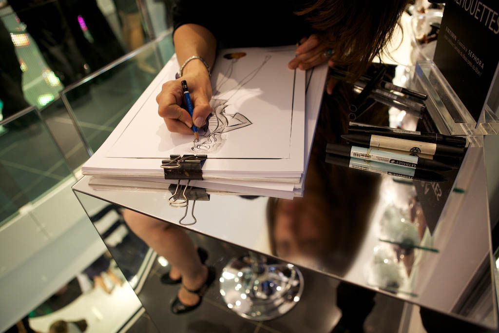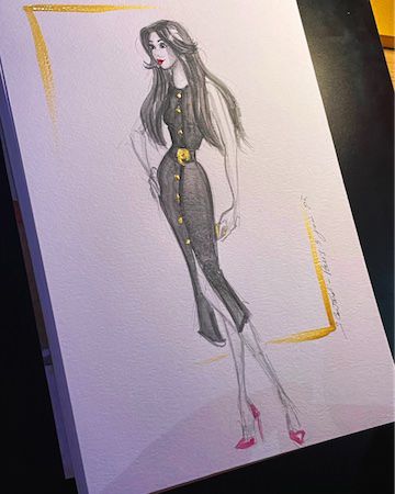 Esta ilustradora de moda crea caricaturas con estilo, proporcionando a los invitados una experiencia artística única y un recuerdo memorable y personalizado
