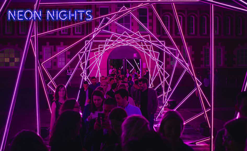 Neon Nights es un sendero de luces multi-instalación que da vida a las calles de la ciudad y los espacios públicos de una manera mágica e impresionante.
