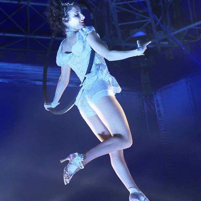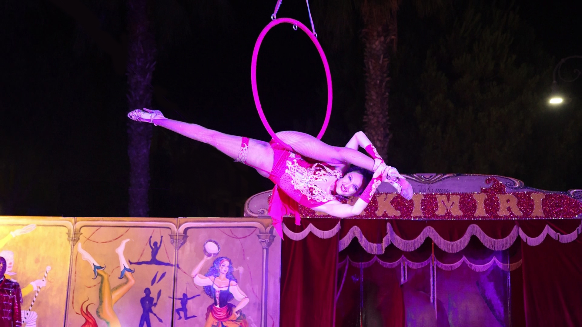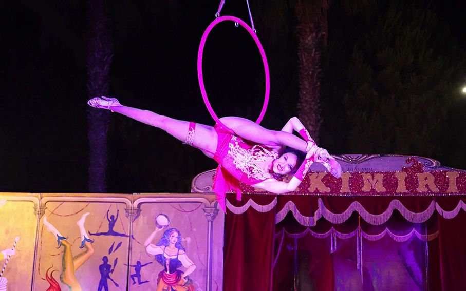 Captura a la audiencia con impresionantes actuaciones de aro aéreo y tacones, combinando fuerza, gracia y acrobacias atrevidas.
