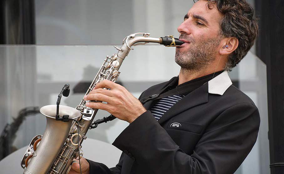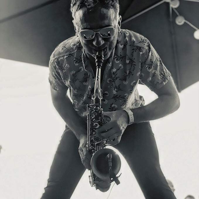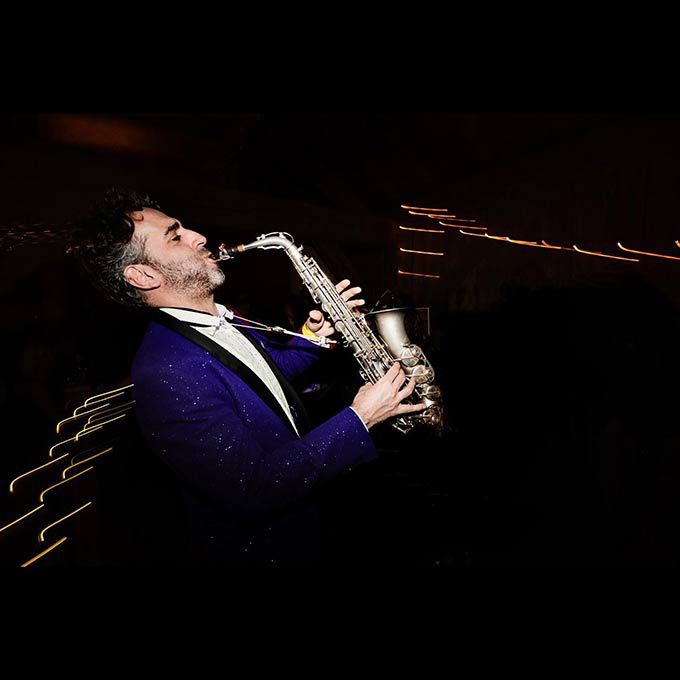 Nuestro talentoso y creativo intérprete de jazz puede actuar como músico solista o con una banda de jazz vibrante, como dúo y junto a otros artistas y DJs.