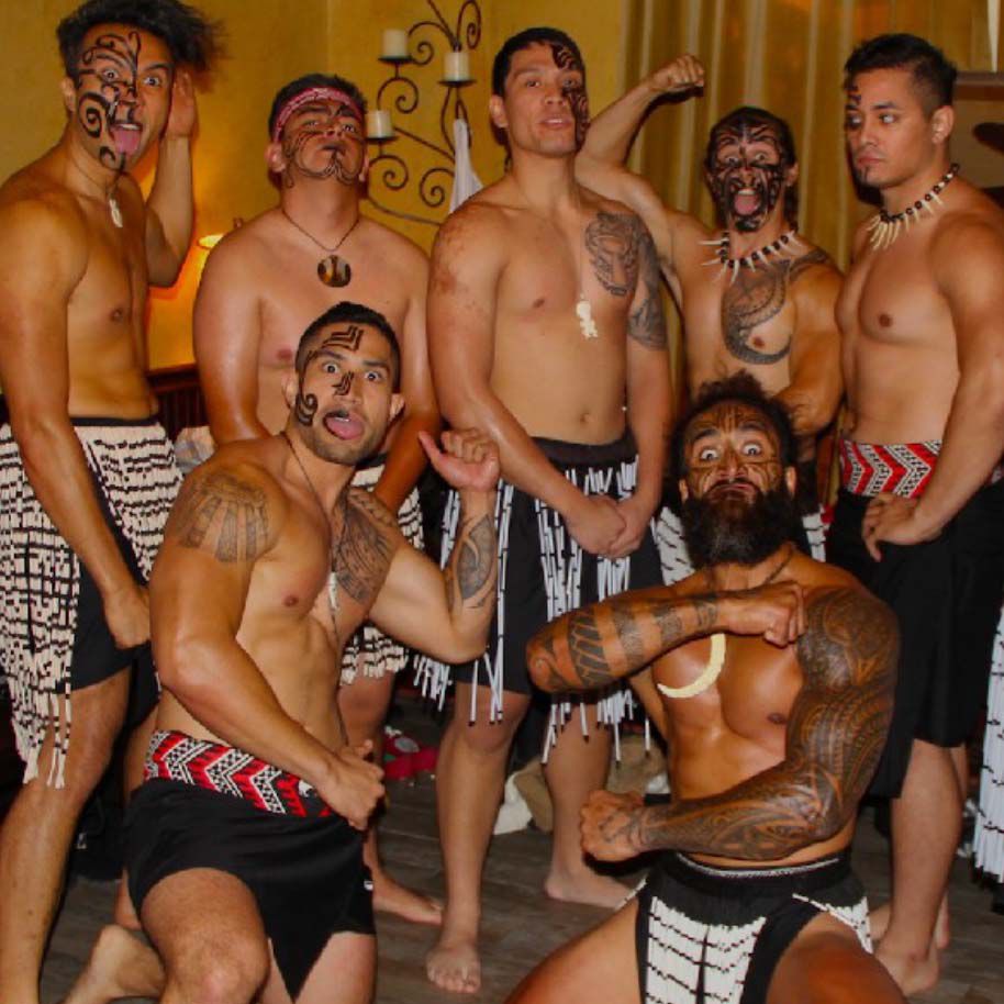 Vistiendo auténticos atuendos Haka y pinturas corporales, estos bailarines están inspirados tradicionalmente y son una celebración increíble de la cultura.
