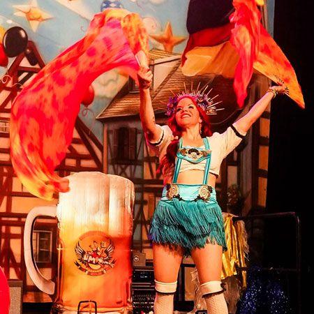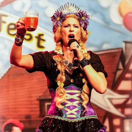 Originaria de Austria, nuestra animadora bávara se graduó de la escuela de actuación y luego tuvo su propio programa de televisión para niños y protagonizó algunas películas antes de enfocar sus habilidades en ser anfitriona, cantante y animadora temática de Oktoberfest. Se dio a conocer en Estados Unidos al aparecer en America's Got Talent y ahora es anfitriona y protagonista de los mayores eventos de Oktoberfest en toda América, además de aparecer en televisión, publicidad y muchas publicaciones.