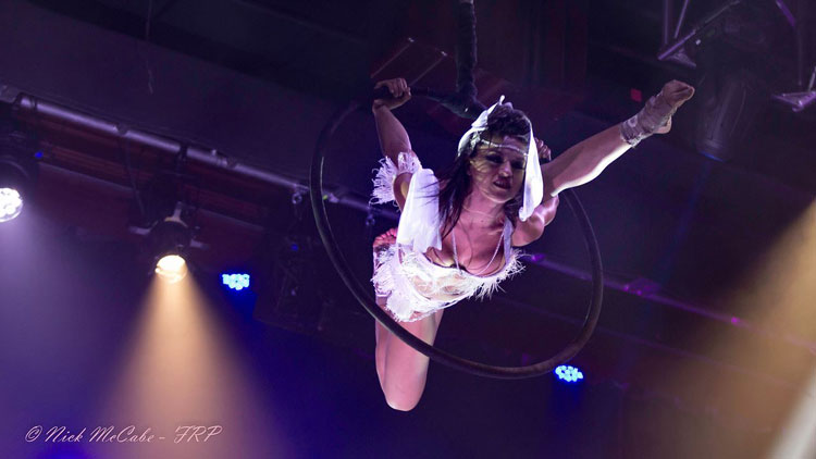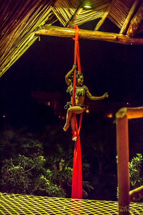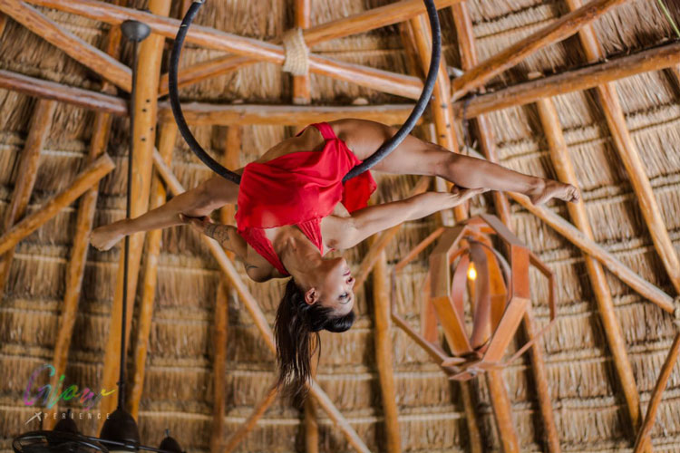 Con años de experiencia perfeccionando sus rutinas, este sensual acto de circo garantiza que todos los invitados miren al cielo mientras ella forma y crea formas increíbles desde arriba.