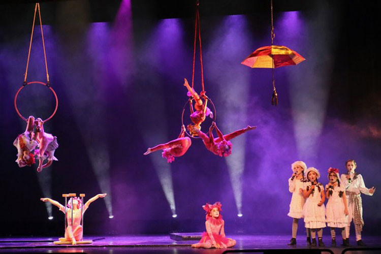 Combinando una amplia gama de actos en el suelo, personajes que caminan, zancos y talentosos artistas aéreos, este es un musical de circo al estilo de Broadway como nunca antes has visto. Audaces y fascinantes de ver, las estrellas infantiles han creado una actuación impactante y altamente motivadora, perfecta para impresionar a audiencias de todas las edades y tamaños.