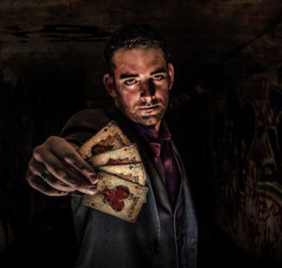 Haciendo uso de una variedad de inquietantes accesorios como cuchillas de afeitar, muñecos de vudú y agujas, este entretenedor no es tu mago de cerca tradicional. Un maestro lector de cartas del tarot y un hábil mentalista, todos los trucos de nuestro artista están bien practicados, totalmente seguros y absolutamente desconcertantes. Garantizado para hacer que se te erice la piel, no podrás apartar la mirada mientras nuestro mago clava una aguja justo en el medio de su mano.