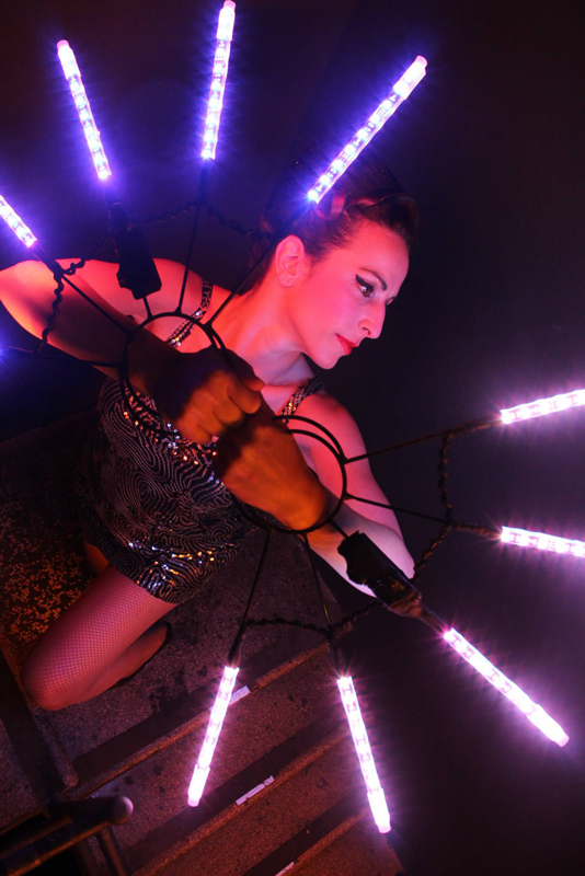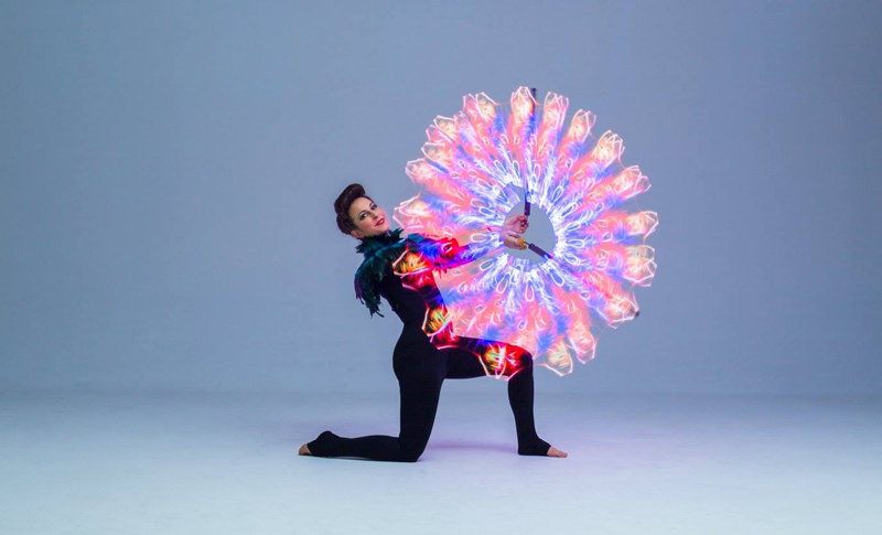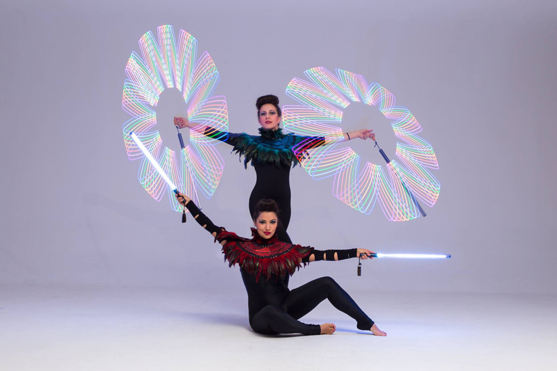 Nuestras talentosas chicas también son hábiles giradoras de fuego y pueden incorporarlo en sus rutinas para lograr una actuación más intensa y dramática. Además, artistas masculinos se unen al grupo para una variedad de otros actos, incluyendo malabares de fuego y comer fuego. Este acto LED único y poderoso ha dejado una gran impresión en toda España en eventos para El Camerino y para empresas reconocidas internacionalmente como Huawei y Erikson. Seductor, innovador y dramático, nuestros giradores de poi LED garantizan elevar la temperatura en cualquier fiesta o evento.