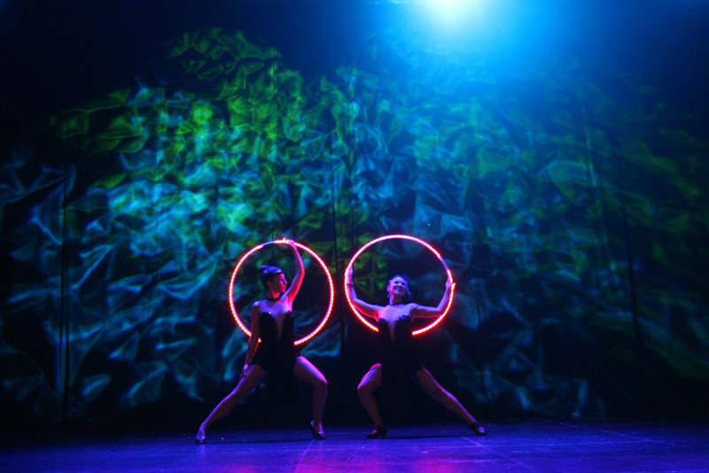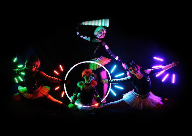 Nuestros impresionantes giradores de poi LED son maestros de los actos circenses tradicionales de giro de poi y actuaciones de hula hoop. El acto adquiere un toque moderno al equipar los poi y los hula hoops con luces LED de varios colores para crear una impactante actuación visual. Nuestros cuatro hermosos artistas LED crean una rutina hipnotizante mientras sus rápidos y complejos movimientos y los brillantes colores de sus luces LED y trajes se combinan en un fondo oscuro para lograr un efecto hermoso e hipnótico.