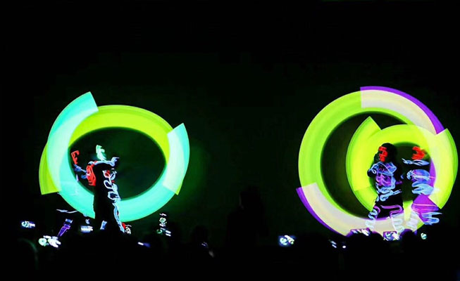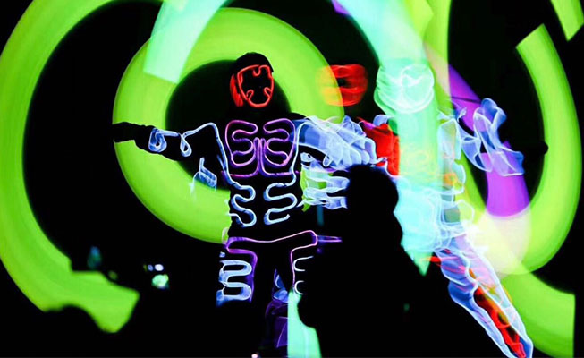 Una impresionante exhibición visual que combina baile de alta energía y vibrantes LEDs