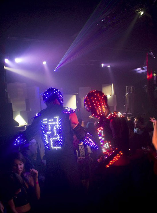 Ya sea caminando entre la multitud, posando para fotos o en el escenario, estos ninjas de LED animarán a cualquier multitud. Ofrecen actuaciones de zancos y LED mientras visten sus trajes de LED. Ya sea en zancos o no, pueden estar equipados con cañones de criogénico, cañones de confeti o pistolas de serpentinas.
