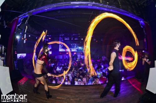 También ofrecen una amplia gama de artes de fuego, incluyendo poi de fuego, abanicos, bastones dobles, antorchas, bastón, orbes, respiración y comer fuego. Con fuego, el dúo puede realizar rutinas dobles coordinadas, acrobacias en pareja, escenas de lucha o dar actuaciones en solitario.