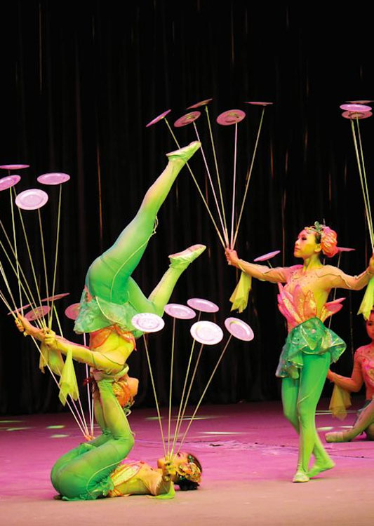 Mostrando increíbles hazañas de fuerza, agilidad, flexibilidad y equilibrio, los Fabulosos Acróbatas Chinos sorprenden al público cada vez que se presentan. Ya sea realizando exhibiciones sobrehumanas de flexibilidad con contorsionistas o girando platos, equilibrando jarras, haciendo malabares, jugando con el Yo-Yo chino o realizando acrobacias en equipo milagrosas, este grupo acrobático chino empuja los límites de lo que es posible en el ámbito del espectáculo.