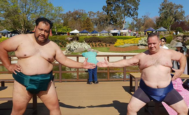 Estos luchadores de sumo llevan el espíritu de Japón a festivales culturales, eventos corporativos y celebraciones públicas.