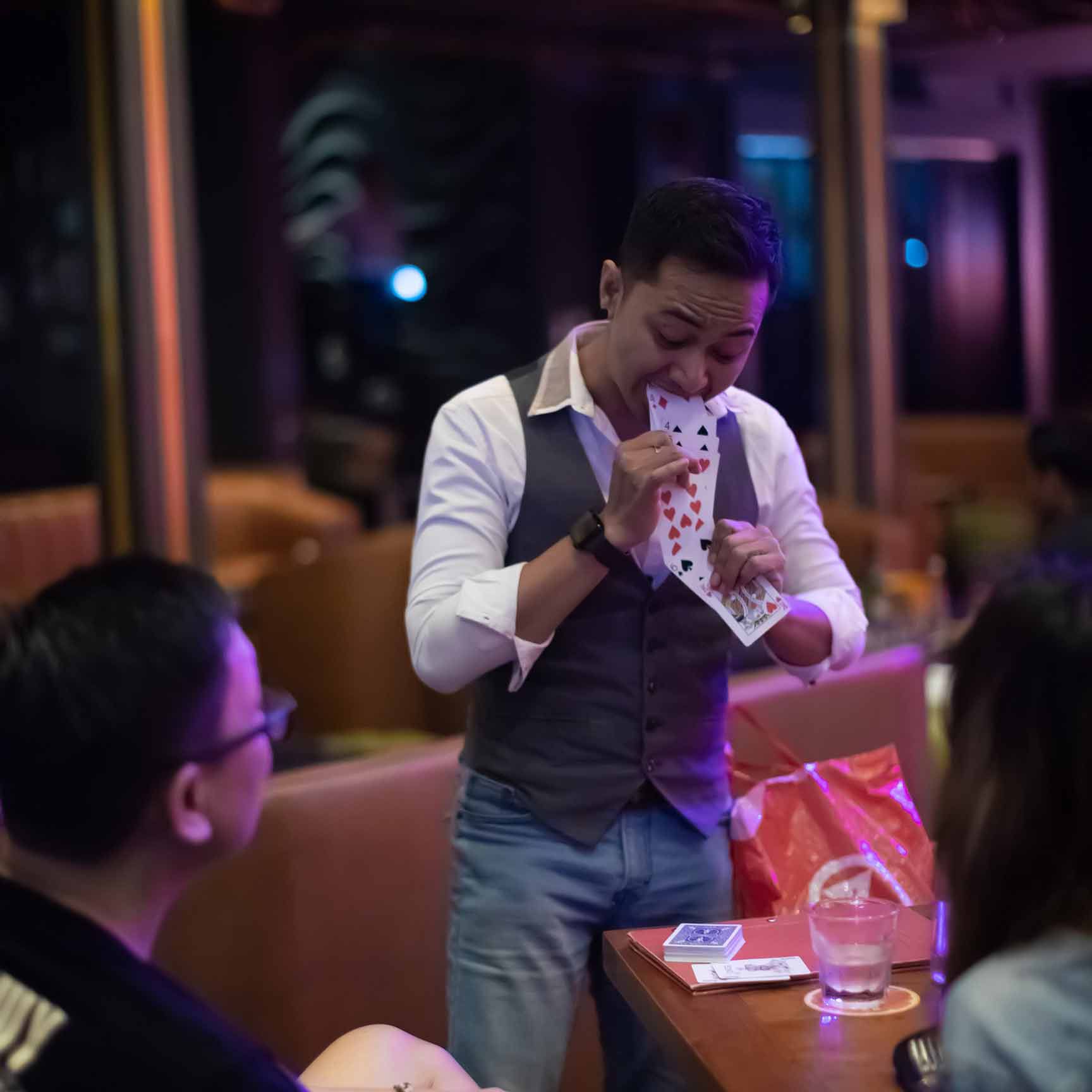" ¡Su actuación fue el punto culminante de nuestro evento! Sus ilusiones dejaron a todos con la boca abierta, y mantuvo a todos al borde de sus asientos. ¡Inolvidable! "