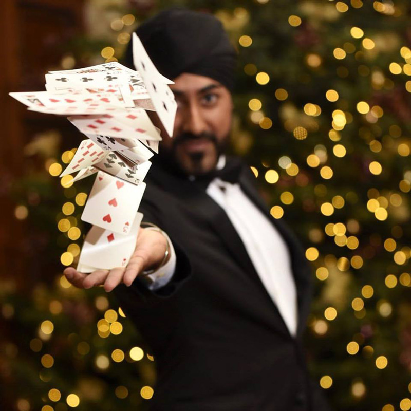 Reserva a nuestro mago ambulante para espectáculos de magia de cerca de diferentes duraciones. Eventos corporativos, bodas y fiestas de alto perfil pueden verlo ofrecer sets de entre una y cuatro horas (dependiendo del tamaño de la audiencia), y se asegura de que cada invitado tenga la oportunidad de experimentar algo fuera de este mundo. Refrescantemente, su acto no depende excesivamente de la magia con cartas y puede incluir magia con iPhone, una mesa levitante, objetos en llamas, lectura mental y una gran cantidad de trucos que desafían la mente.