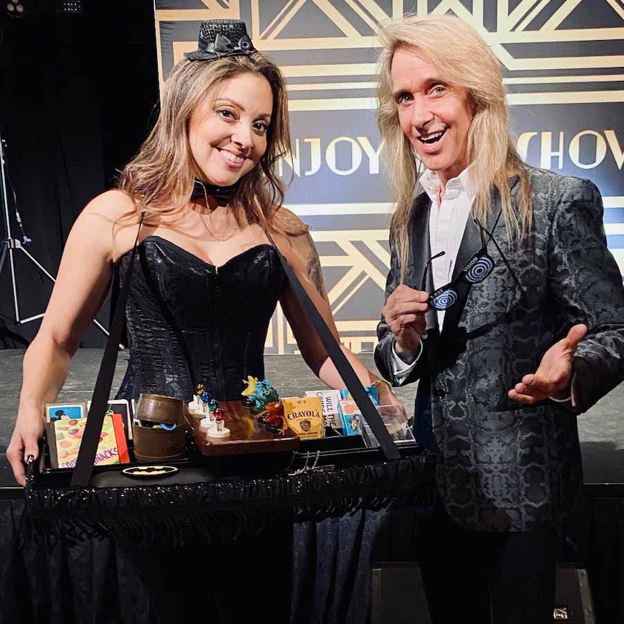 Un versátil animador con años de experiencia como mago ambulante y malabarista de circo, y que ofrece espectáculos de ilusionismo con la ayuda de su glamorosa asistente. Nuestro animador de circo ha aparecido en Late Night with David Letterman, el Tonight Show with Jay Leno, ¡e incluso ha partido a una mujer por la mitad en Jerry Springer! También ha escrito magia para muchos de los mejores magos de Las Vegas.