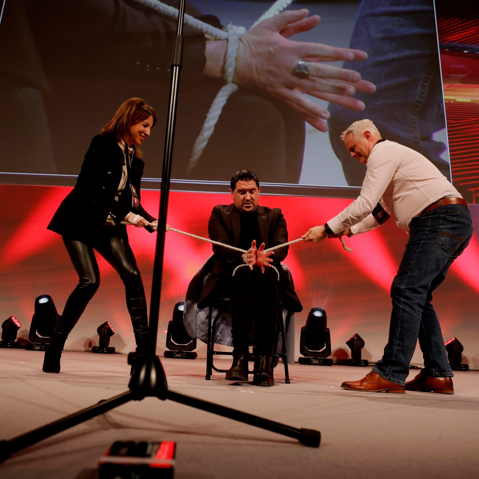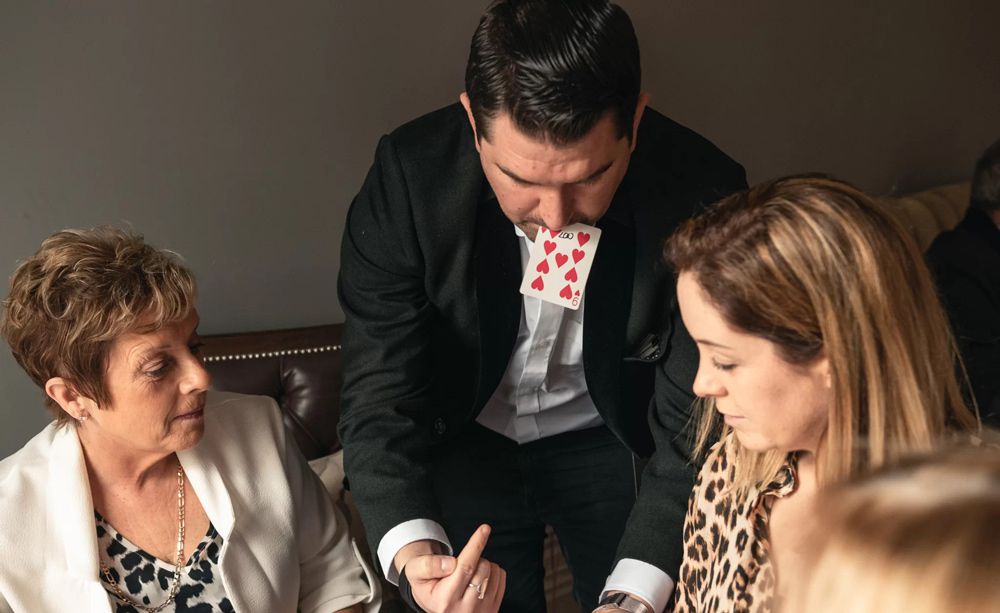 Ofreciendo tanto emocionante magia de cerca como espectáculos de escenario, nuestro ilusionista puede adaptar su actuación para satisfacer las necesidades de tu evento, ya sea una fiesta privada íntima, un evento corporativo a gran escala o un gran truco de espectáculo de escenario.