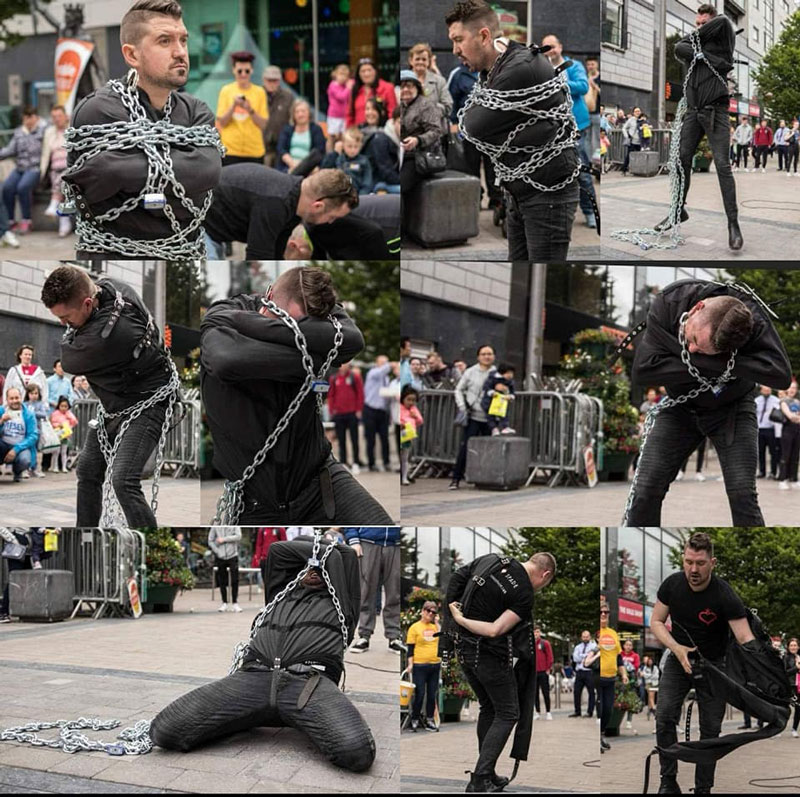 Influenciado en gran medida por los maestros del pasado, incluido Harry Houdini, junto con grandes contemporáneos como David Blaine, nuestro mago de escenario también ha logrado algunos increíbles trucos a gran escala, ilusiones y hazañas de escapismo, como liberarse de una caja sellada y caer al río Shannon.
