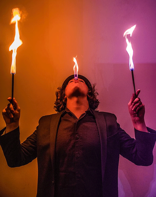 Un mago multifacético que puede comer fuego, hacer malabares con cuchillos y realizar trucos de magia tremendos, este inadaptado profesional está garantizado para captar la atención de su audiencia de principio a fin.