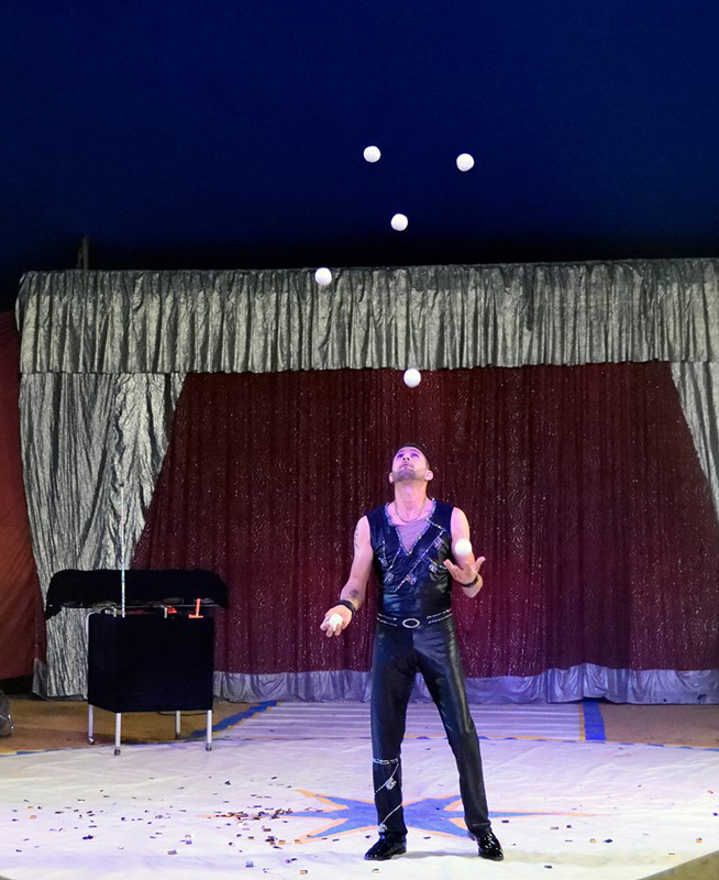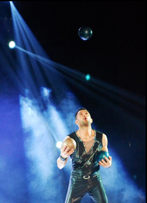 Artista de circo altamente habilidoso y versátil ofrece rutinas de malabarismo impresionantes que sin duda darán de qué hablar a la gente.