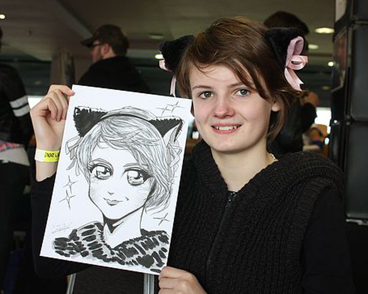 Garantizado para crear revuelo en cada evento, nuestro experimentado caricaturista ofrece un servicio único que hará que multitudes de invitados se acerquen para que les dibujen su retrato al estilo manga.