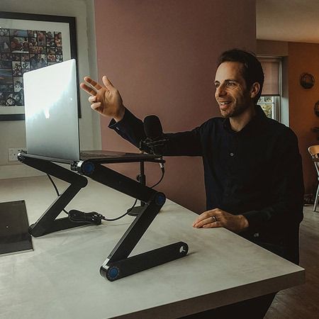 Además de apariciones en vivo en sus eventos, Mark también puede ofrecer discursos virtualmente desde su estudio en casa, que cuenta con iluminación y audio de estudio profesional.